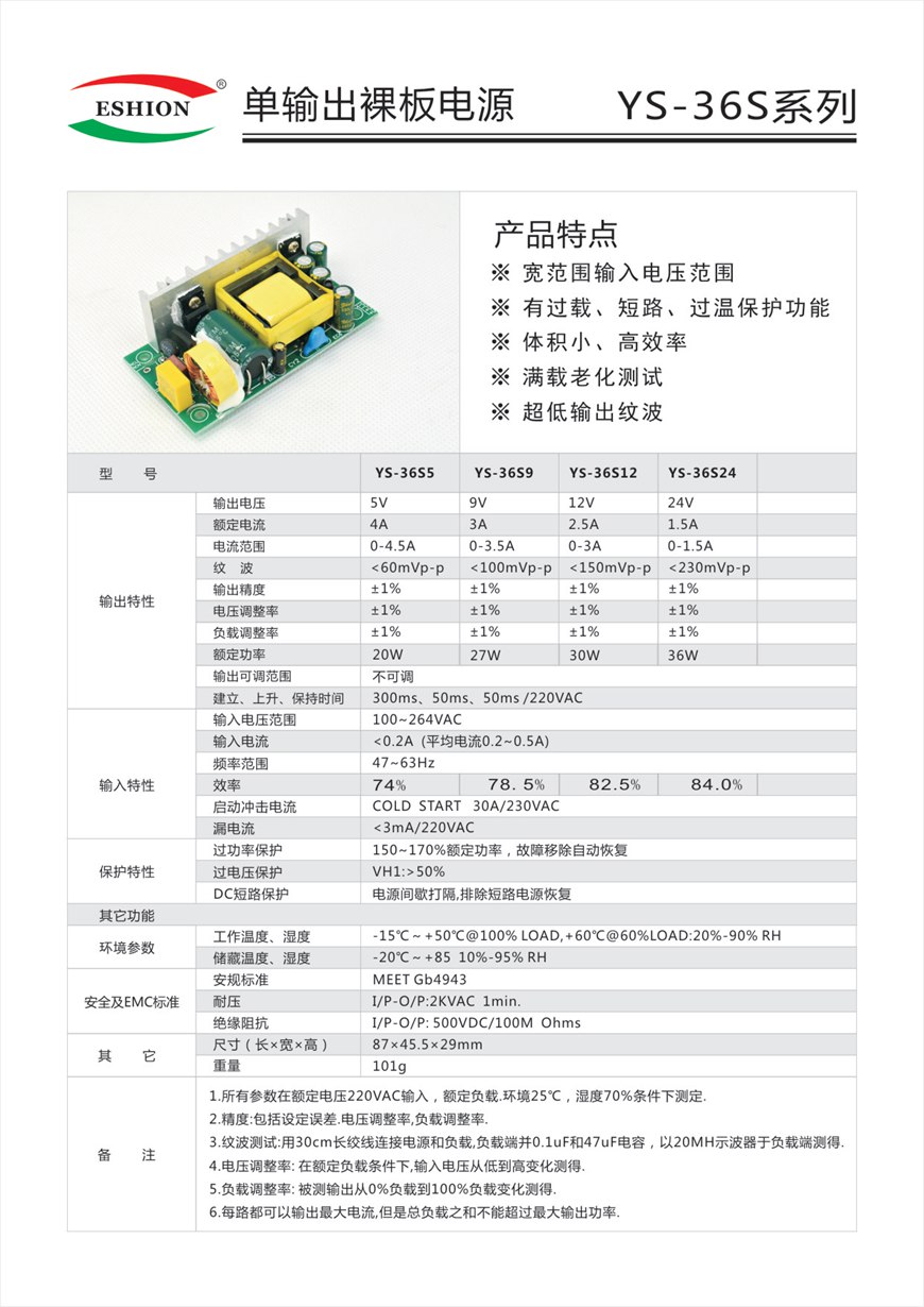 单输出裸板电源