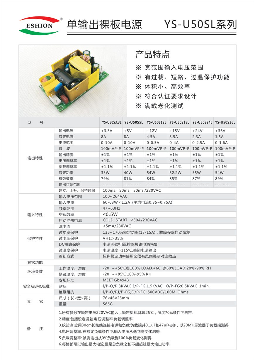 单输出裸板电源
