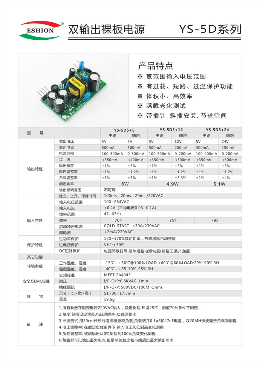 双输出裸板电源