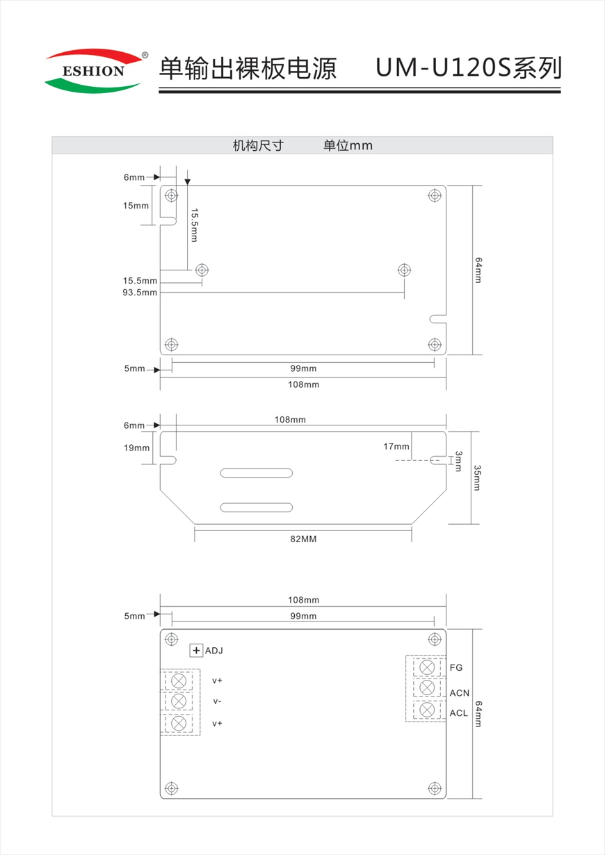 单输出裸板电源